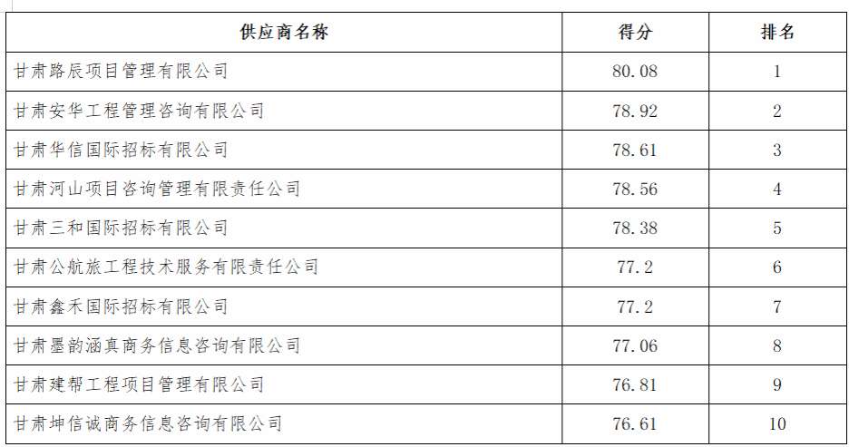 甘肃工业职业技术大学2026-2027年度招标代理服务机构征集项目以封闭式框架协议采购进行招标,现将成交结果公示如下: